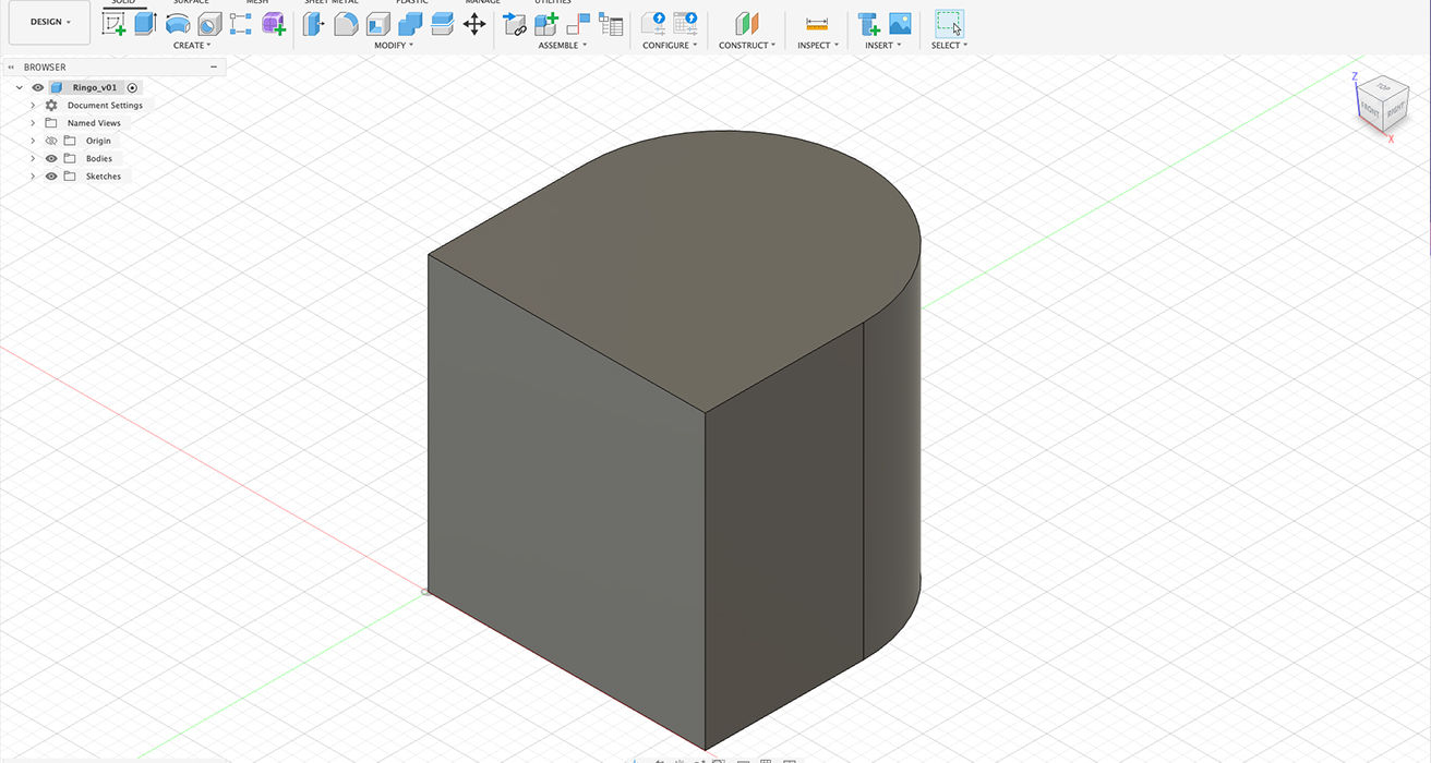 Below is a simplified view of the modelling workflow used to shape Ringo’s geometry in Fusion. The internal assembly cannot be shown due to patents, but the form development illustrates how design and engineering can coexist within one interface.